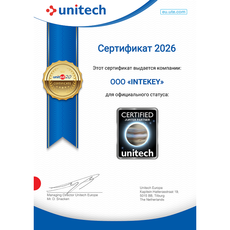 Официальный статус партнёра Unitech уровня Jupiter