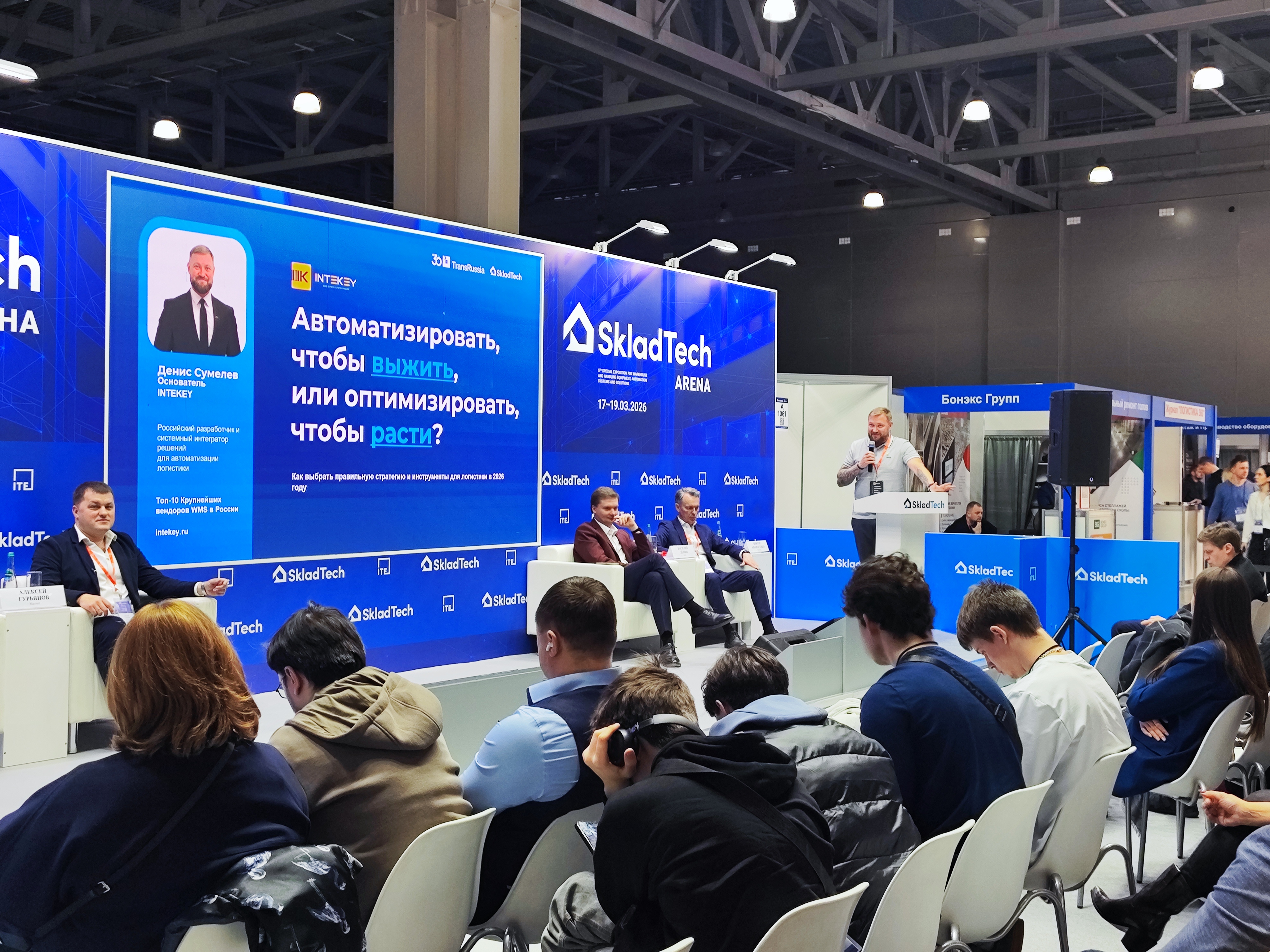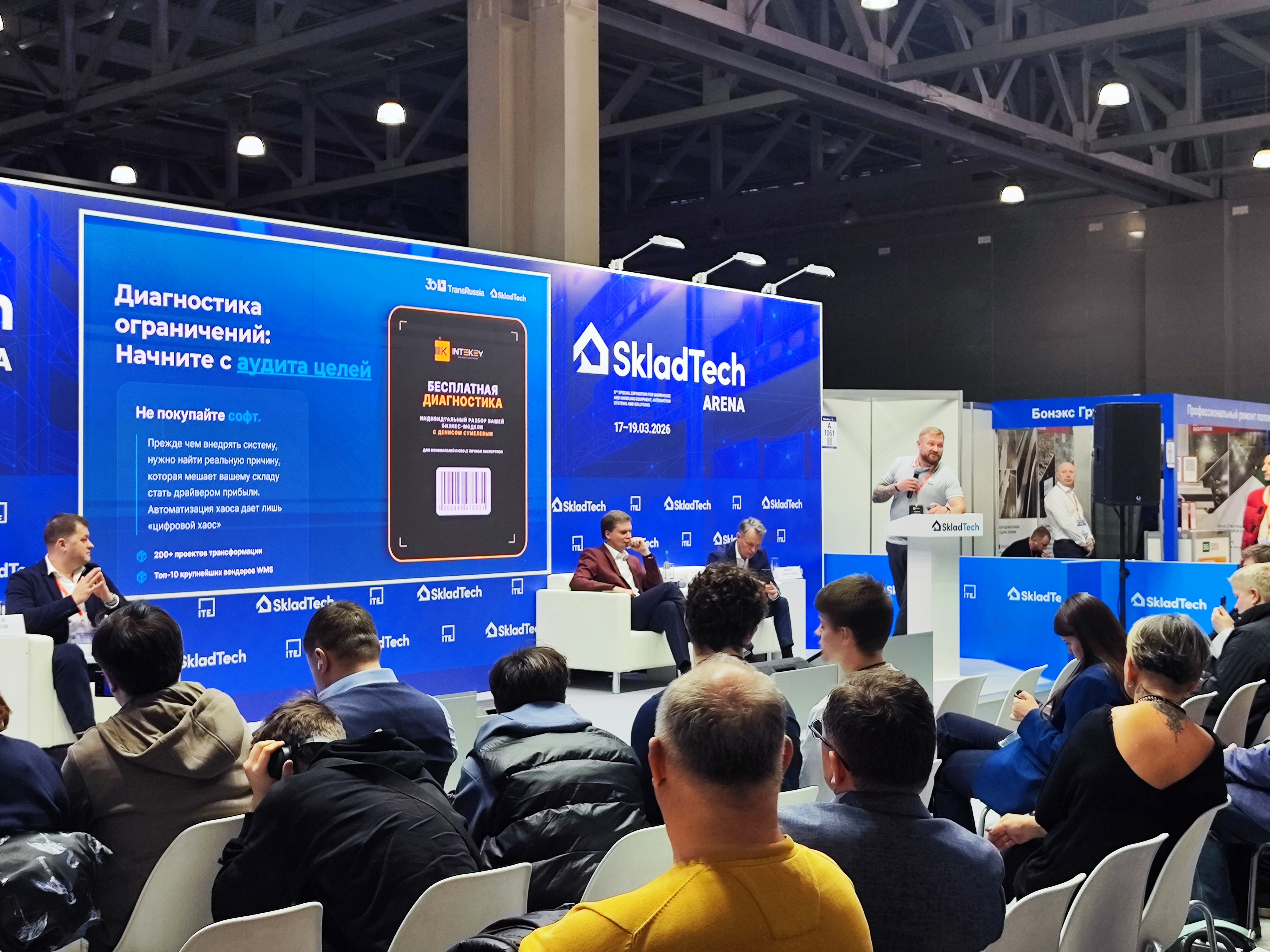 После сессии Денис дал интервью в главной студии выставки. Обсудили выбор ниши автоматизации складов, управленческие решения за 6 лет турбулентности, подход к формированию команды и ключевые советы для руководителей. Видео с практическими инсайтами выложим в ближайшее время.